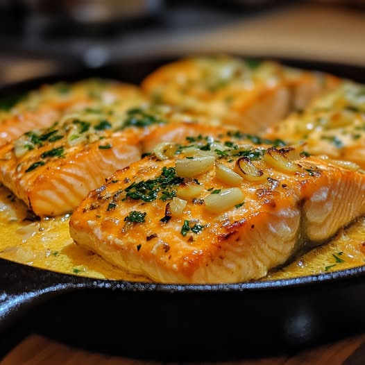 Ingredientes: 4 filetes de salmón 1 limón (su jugo y ralladura) 1 cucharadita de pimentón dulce 4 dientes de ajo, picados 1/4 de taza de aceite de oliva Sal y pimienta al gusto Perejil fresco, picado (para decorar) Modo de Preparo: ⏬ Continua en la siguiente pagina ⏬